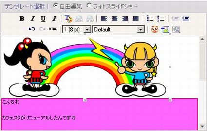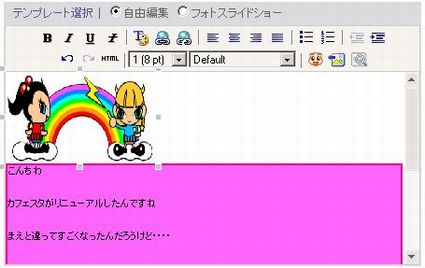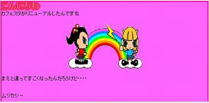 リニューアルしたんですね まえと違って すごくなったんだろうけど・・・ HTMLってなんですか? カフェスタのHELP ぜんぜん わかりません ムヅカシー 誰か おしえてください! |
