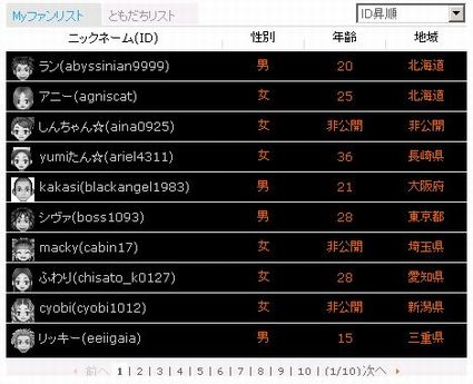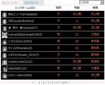 登録してくれたひとはmyファンリストにある。 登録したともだちはともだちリストだよ。 しばらく遊びに行ってないのならリストから飛んで訪問しよう |