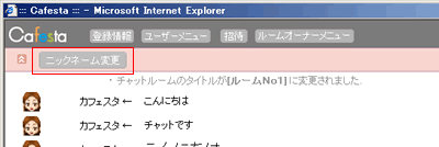 ニックネーム変更 チャットルーム内で表示される自分のニックネームを変更することができます |