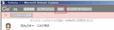 現在入室中のチャットルームに他のユーザーを招待することができます。 チャットルーム上部の『招待』ボタンをクリックすると、 現在オンラインのユーザーをIDで検索することができます。 招待したいIDが見つかったら、そのひとにメッセージを送ることができます。 |